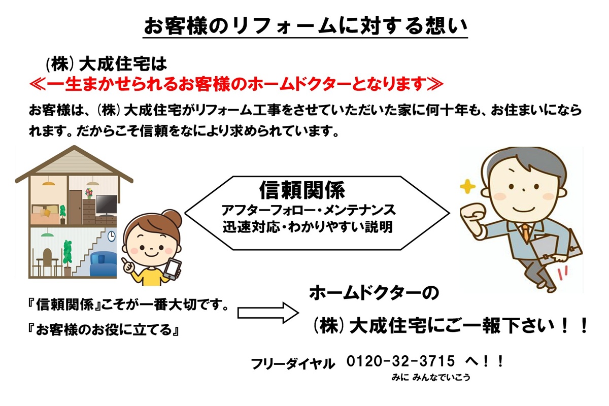 大成住宅のリフォームは、そんなお悩みはマルっと解決できます!